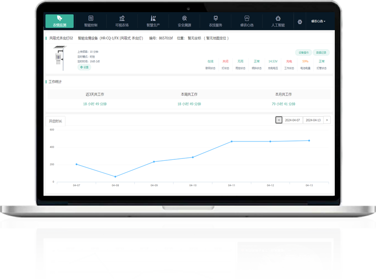 具備光控、雨控、時控 3種智能控制切換模式,實現(xiàn)依據(jù)晝夜、天氣、時段變化自動控制燈光開光和設備啟停,也可遠程使用電腦/APP隨時隨地聯(lián)網(wǎng)遠程管理,無需人工看管也能智能殺蟲。