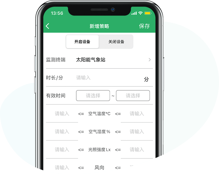 不想頻繁的手動(dòng)操作APP,你可以通過(guò)睿農(nóng)寶APP提前設(shè)定好灌溉策略,可以實(shí)現(xiàn)定時(shí)定點(diǎn)的執(zhí)行灌溉操作,僅需設(shè)定一次操作策略,系統(tǒng)便會(huì)嚴(yán)格執(zhí)行。