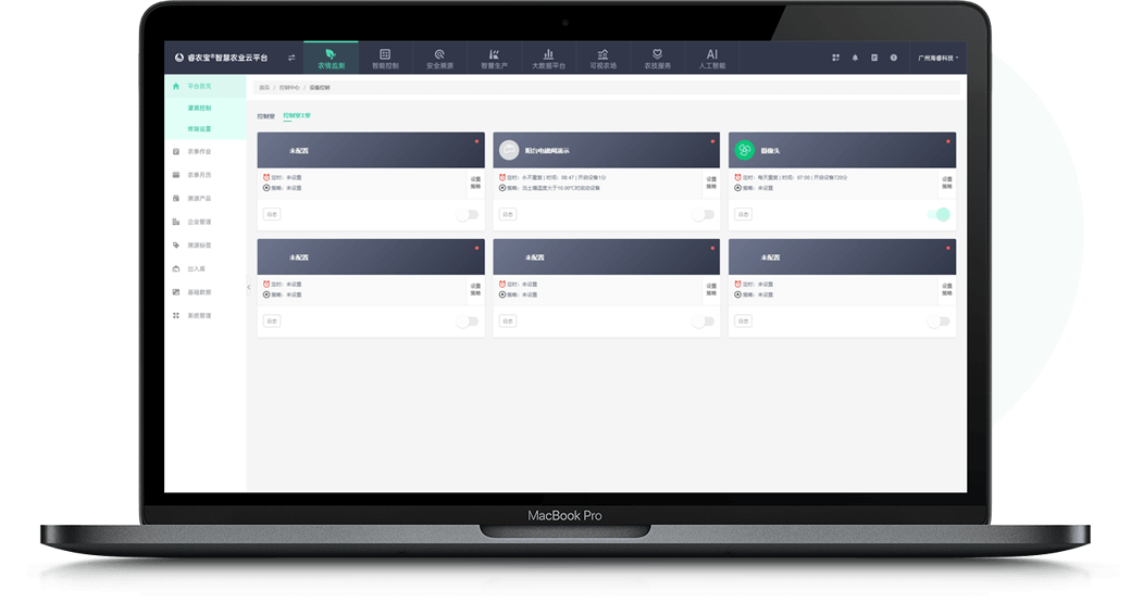 通過睿農(nóng)寶APP,可以對設備進行遠程控制。同時還可以通過APP設置智能控制策略,可以實現(xiàn)定時、定點的控制設備。結(jié)合“睿農(nóng)寶”環(huán)境監(jiān)測設備,還可以根據(jù)現(xiàn)場環(huán)境情況進行智能控制。例如當溫度過高時打開風機,當光照不足時打開日光燈等,實現(xiàn)自動化生產(chǎn)管理。