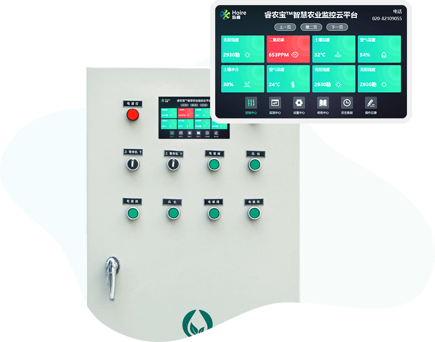 結(jié)合“睿農(nóng)寶”環(huán)境監(jiān)測系統(tǒng),可以實時展示環(huán)境數(shù)據(jù)與設備運行狀態(tài)。每一個設備都有獨立的控制開關,支持多路設備的控制(4/8/16路)。