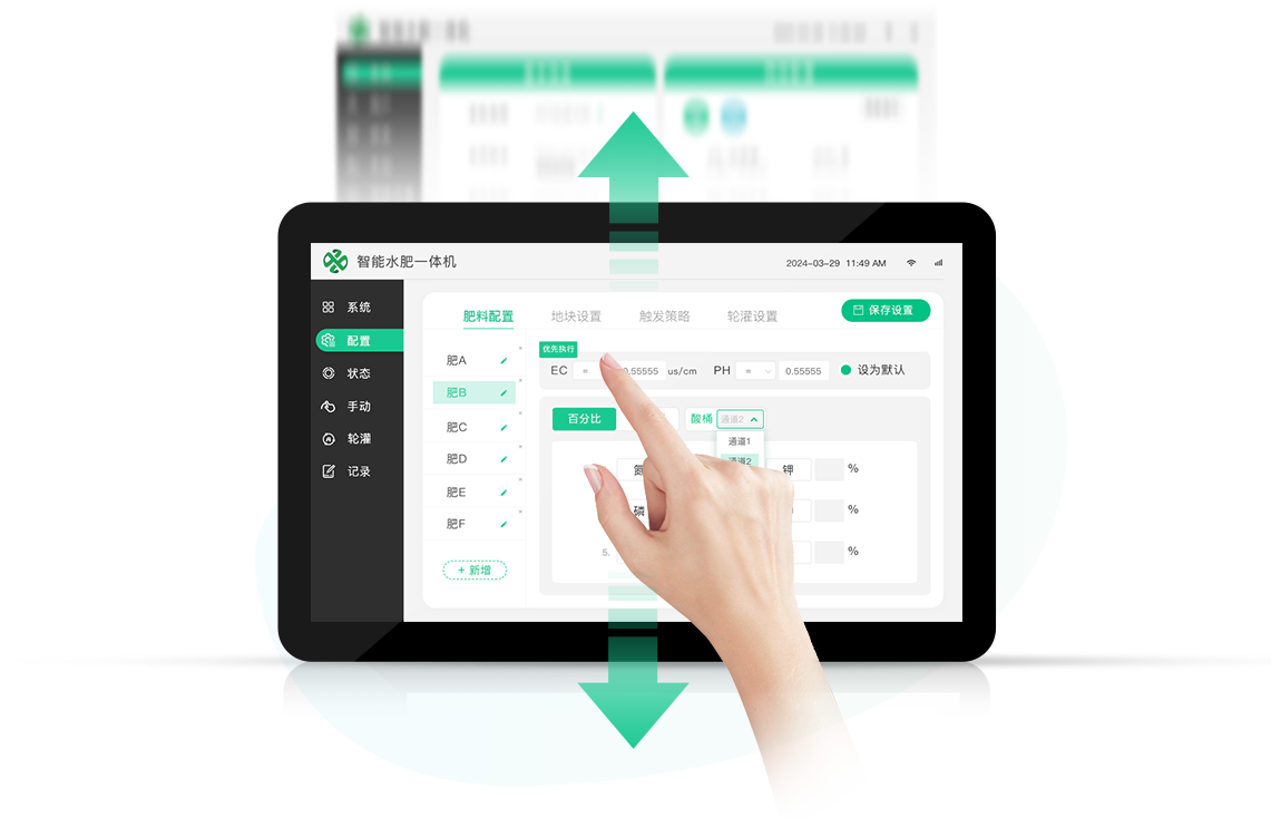 標(biāo)配3肥1酸通道,模塊化設(shè)計,支持肥料通道、閥門數(shù)量任意擴展,靈活應(yīng)用各種種植管理需求。